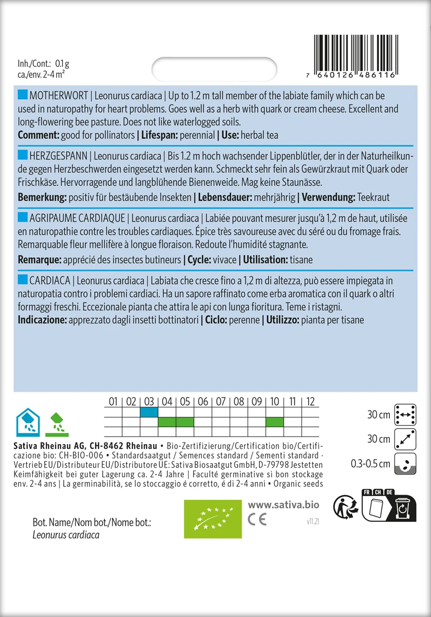 Bis 1.2 m hoch wachsender Lippenblütler, der in der Naturheilkunde gegen Herzbeschwerden eingesetzt werden kann. Schmeckt sehr fein als Gewürzkraut mit Quark oder Frischkäse. Hervorragende und langblühende Bienenweide. Mag keine Staunässe.