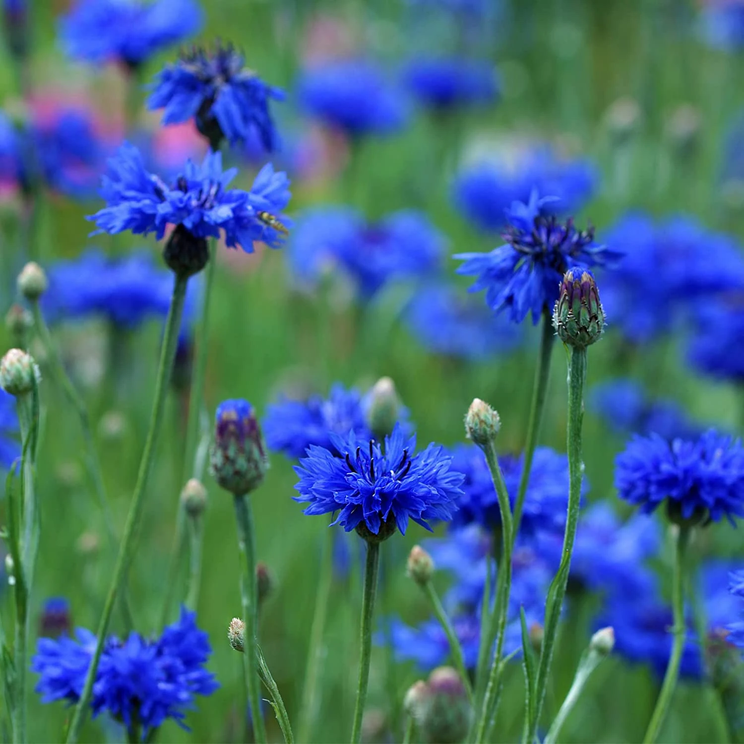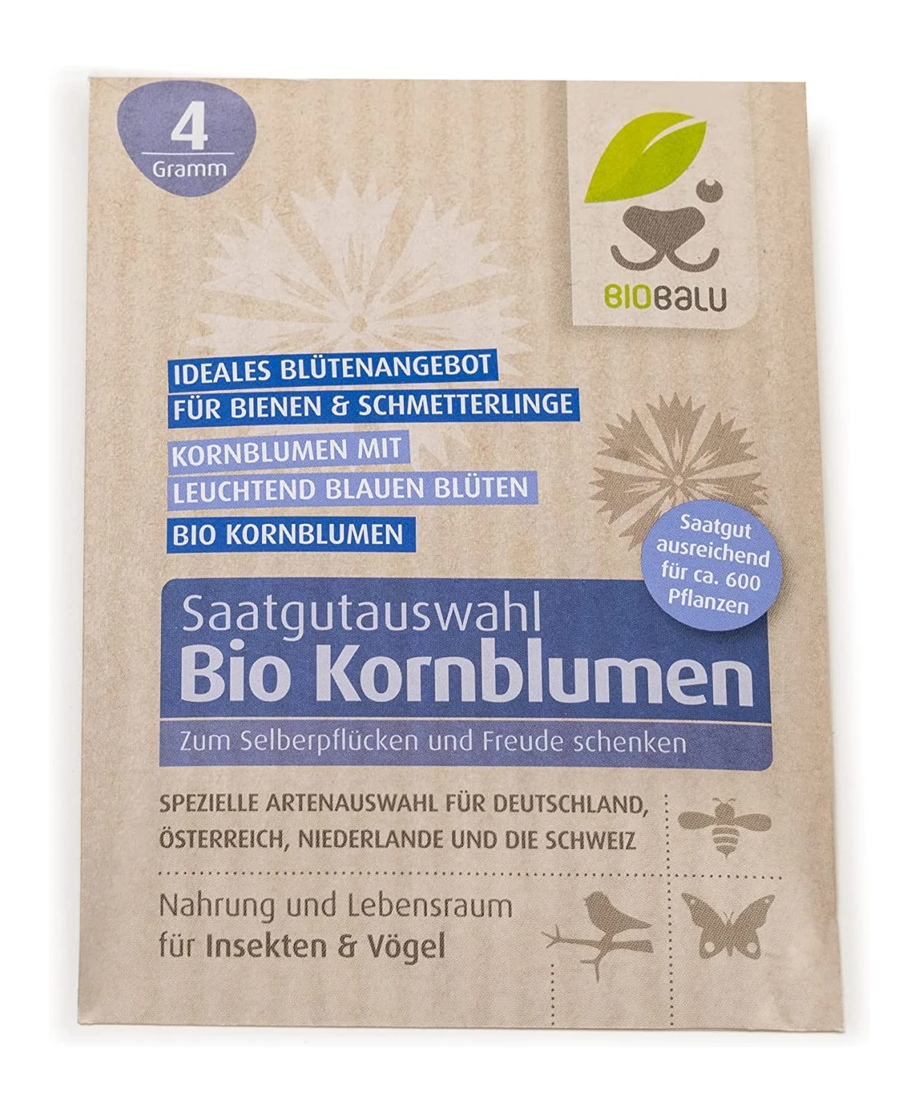 Kornblume mit leuchtend blauen Blüten, die gerne von Bienen und Insekten angeflogen werden. Unkomplizierter anspruchsloser Sommerblüher.