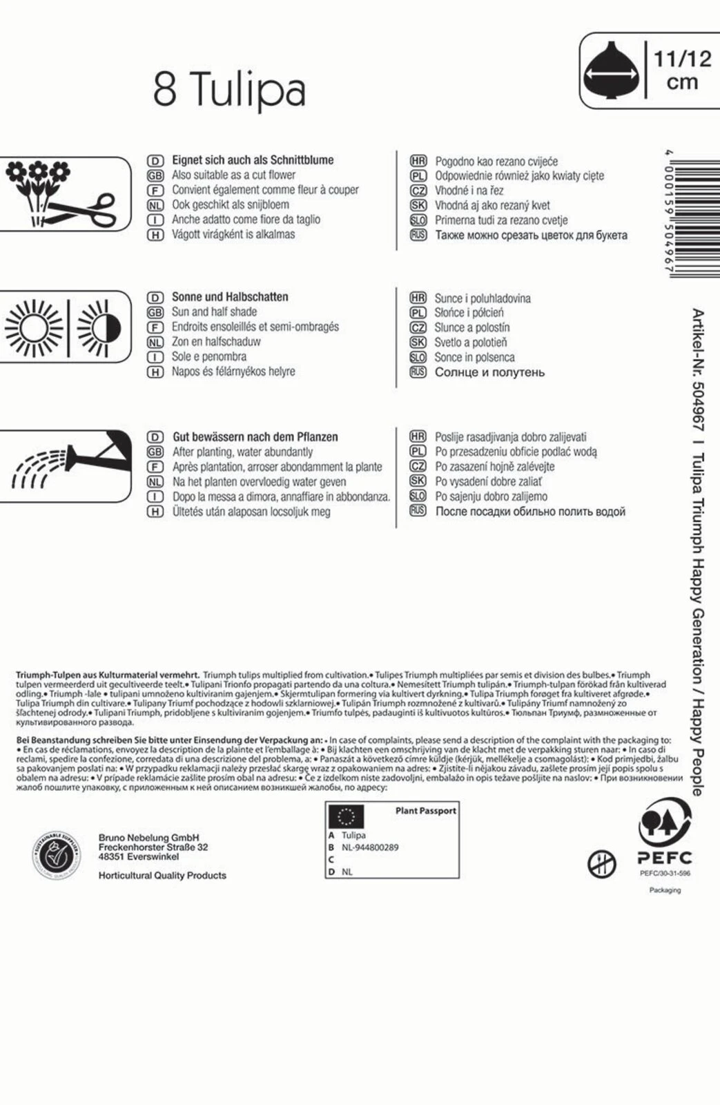 Die Mischung „Triumphtulpe ‚Happy Mix’“ hält, was sie verspricht: Sie bringt Freude in den Garten und als Schnittblume auch ins Haus. Dieses Duo besteht aus zwei Sorten mit weiß-rot geflammten und weiß-gelb geflammten Blüten. Eine Besonderheit bietet auch das grüne Laub, das sanft weiß umrandet ist. Diese von April bis Mai blühende Tulpenmischung verströmt pure Freude!