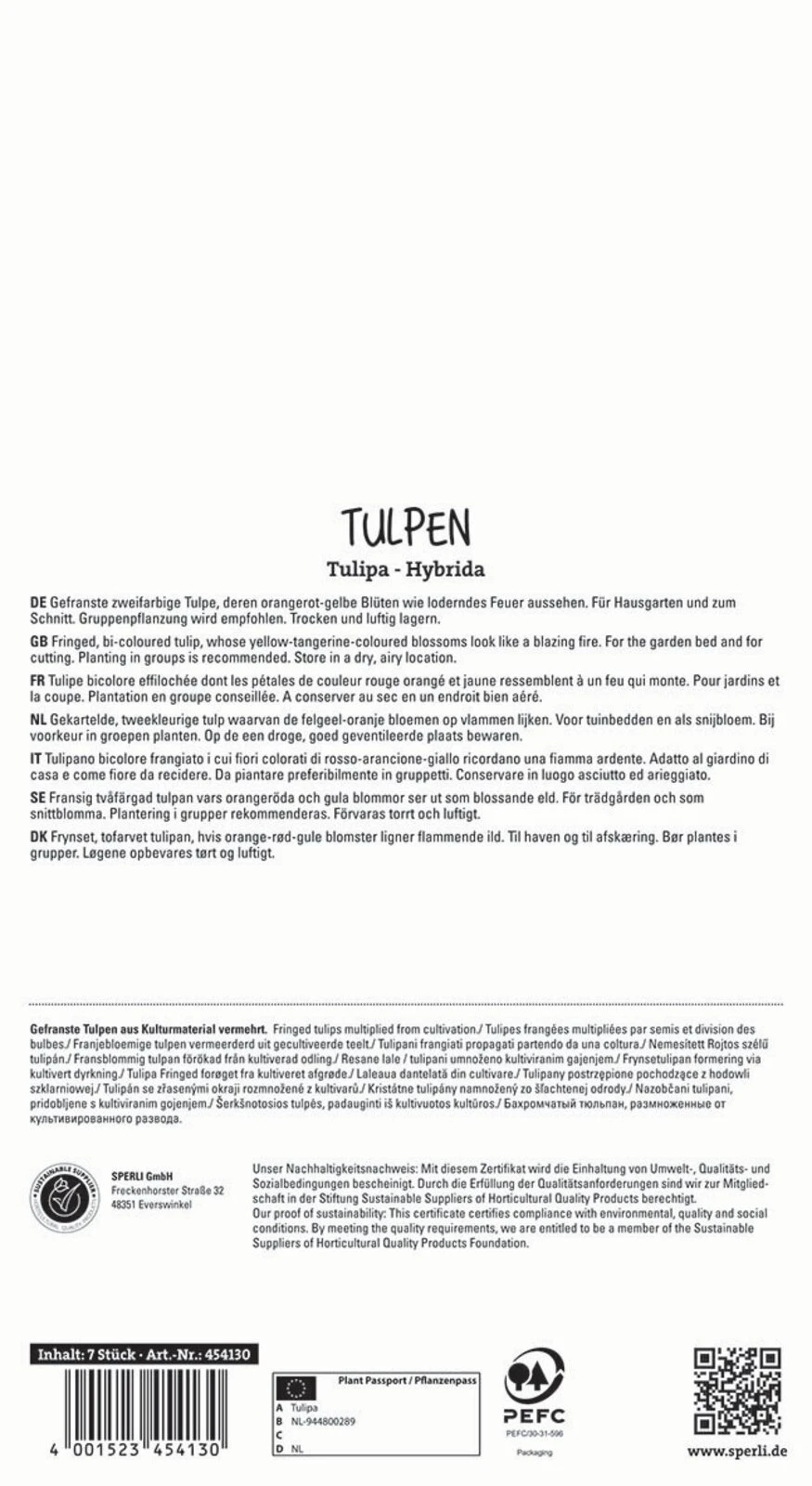 Ein rot gelbes Blütenfeuerwerk bietet diese gefranste, gefüllte, späte Tulpe. Ihre Wuchshöhe lässt perfekt eine Kübel – und Topfbepflanzung zu.