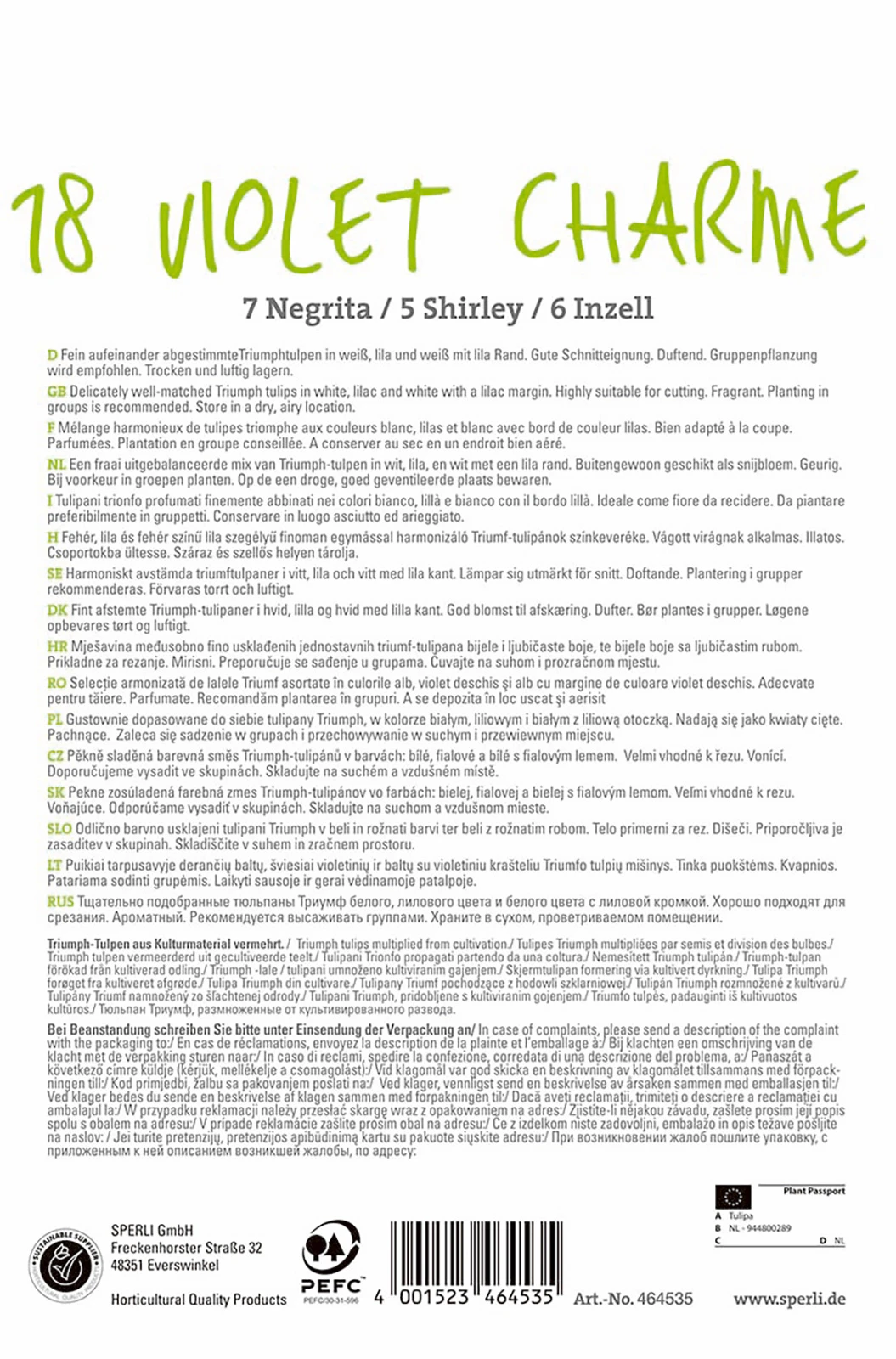 Eine harmonische, kontratsreiche Mischung aus drei eleganten Triumphtulpen. Eine weiße, eine violette und eine violett – weiße Sorte blühen zusammen im Beet.